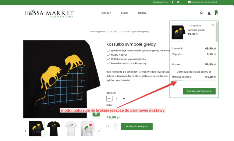 Moduł pokaże klientowi kwotę jaka brakuje do darmowej dostawy.